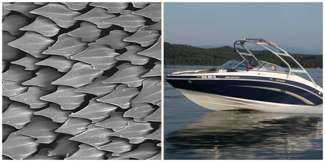 Pola mikroskopis kulit hiu mampu mengurangi grid dan mencegah mikroorganisme menumpuk di permukaan perahu. NASA bekerja sama dengan 3M untuk menghasilkan lapisan permukaan pada perahu seperti lapisan kulit hiu.